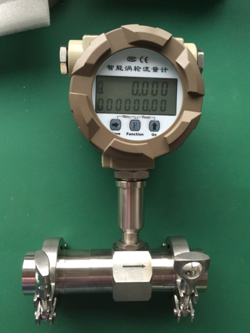 流量計(jì)在管道中心安放一個(gè)渦輪,兩端由軸承支撐。當(dāng)流體通過(guò)管道時(shí),沖擊渦輪葉片,對(duì)渦輪產(chǎn)生驅(qū)動(dòng)力矩,使渦輪客服摩擦力矩和流體阻力矩而產(chǎn)生旋轉(zhuǎn)。渦輪的轉(zhuǎn)速通過(guò)裝在機(jī)殼外的傳感線圈來(lái)檢測(cè),傳感線圈將檢測(cè)到的磁通變化信號(hào)送入前置放大器,產(chǎn)生于流速成正比的脈沖信號(hào),送入單位換算與流量積算電路得到并顯示累計(jì)流量值和瞬時(shí)流量值。