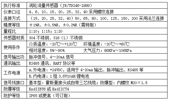二、機(jī)油流量計(jì)主要技術(shù)參數(shù)