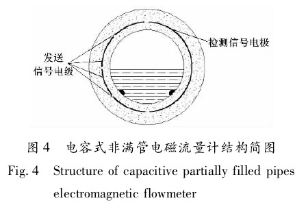 ②電容式非滿管電磁流量計(jì)h。電容式非滿管電磁流量計(jì)結(jié)構(gòu)簡圖如圖4所示。、檢測信號電極 發(fā)送信號電