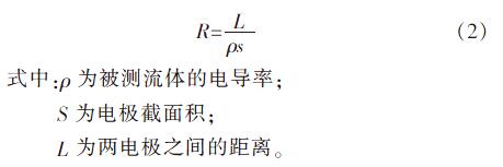 采用**電導(dǎo)率測量方法,既可方便流量計(jì)獨(dú)立使用,也克服了相對電導(dǎo)率方法的弊端。解決的難點(diǎn)在于:一是如何將空管檢測信號與正常流速信號分離開,二是如何在信號線上走電源信號。解決的方法在于空管檢測信號利用高頻激勵(lì)與50 Hz流速信號區(qū)分開,但是頻率過高容易引起電極間電容產(chǎn)生極化效應(yīng)且不利于PCB 布板,后綜合考慮使用周期為16 μs 的高頻正弦波勵(lì)磁。將空管檢測信號采用數(shù)據(jù)流進(jìn)行傳輸, 實(shí)現(xiàn)信號線的單線復(fù)用。為了保證微弱的空管檢測信號不失真?zhèn)鬏敚诹髁坑?jì)信號調(diào)理板上就近進(jìn)行信號處理后,通過屏蔽電纜傳輸至主控電路。空管檢測信號采用單片機(jī)控制,可定時(shí)采集當(dāng)前流體的電導(dǎo)率,與空管檢測的閾值相比較,還可采樣勵(lì)磁電流并判斷勵(lì)磁是否出現(xiàn)開路或者短路故障。兩電極之間流體電阻計(jì)算