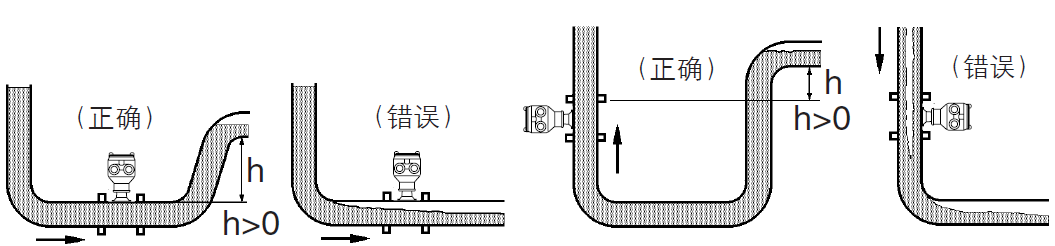 2、當測量管線與測量儀表相連時,應特別注意。用于氣體介質和低沸點液體流體的管線應向上敷設;輸送一般液體的管線也應向上敷設。