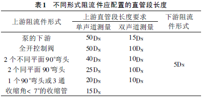 不同形式阻流件應配置的直管段長度列于表1所示。