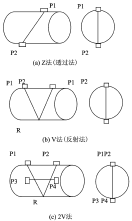 當流體平行于管軸流動時,通常可用圖1中的透過法(Z法)安裝能獲得較好的精度。但當流體流動方向與管軸不平行,存在半徑方向的速度成分時,應采用圖 1中的反射法(V法)或者采用2V法安裝。對于已配置好的流體管道,特別是測量大口徑管道流量時,由于上游流動狀態的干擾而易于造成測量誤差的場合,比較 合適的措施是增加測量線,即增加超聲波的傳播路徑,更多地接受傳播路徑中的流速信息,進行平均,以抵消流體擾動造成的測量誤差。增加測量線時,換能器的安 裝應使超聲波傳播途徑均勻地置于流通截面上。一般認為有4條測量線(即4個換能器)就足夠了。