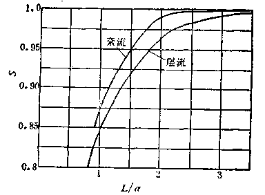 (3-47)顯然,我們希望S值越接近于1越好。也就是說,希望磁場軸向長度為有限長時電極上產(chǎn)生的感生電動勢盡可能接近于無限長時的值.若以L/d表示磁場軸向長度與管道內(nèi)徑之比,則根據(jù)計算,在測量管是絕緣管壁的條件下,S與L/d的關(guān)系如圖3—35所示.由圖可知,在保證S=0.99的情況下,L/ d的比值范圍大致為L/d=2.8—3.04.這就是說,為了減少磁場地緣的影響,勵磁線圈的長度應(yīng)為測量管內(nèi)徑的2. 8—3.04倍,這樣才可以使電極上產(chǎn)生電動勢接近于無限長磁場時的值。