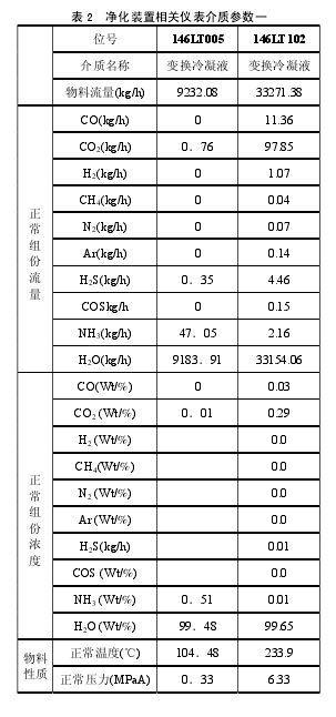 經記錄整理,案例中的凈化裝置相關儀表介質參數如表2所示