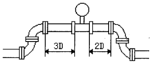 縱端面采用特殊形線的變徑整流器(己申報國家),具有整流,提高流速及改變流速分布的多重作用,其結構尺寸小,長度僅為工藝管內徑的1/3,可以直接卡裝在儀表的兩端,不僅不需要另外附加直管道,而且可以降低儀表對上游直管道的要求。實驗表明:儀表上游阻力件為一個平面內的兩個90°彎頭 在一般情況下,渦街流量計上游側應加裝大于20倍管道內徑長度的直管道,而渦街流量計加裝了變徑整流器大大降低了對上游測直管道長度的要求,其阻力遠遠小于傳統的變徑管。更主要的是,可使下限流速降為原來的1/3,量程比提高到15:1以上。 ’