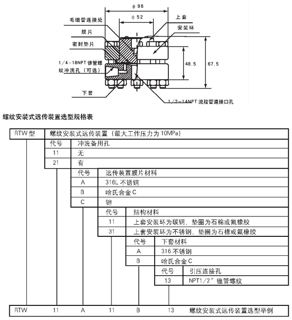 316L不銹鋼、哈氏合金C-276、蒙乃爾或鉭 (每種型號可選材料參見訂購指南) |